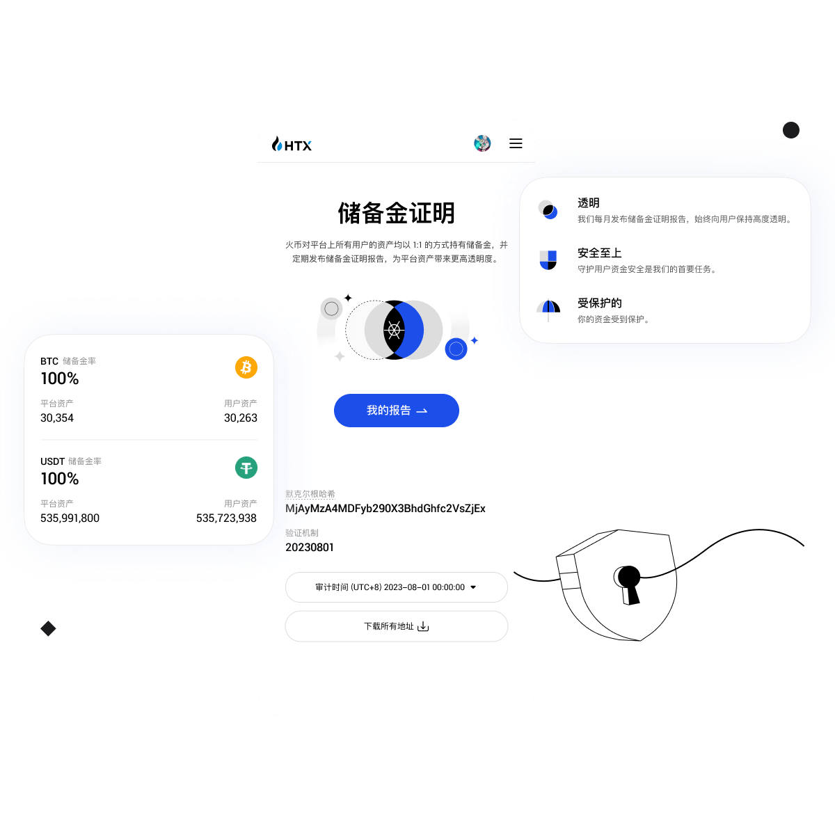 HTX对平台上所有用户的资产均以 1:1 的方式持有储备金,并定期发布储备金证明报告,为平台资产带来更高透明度。